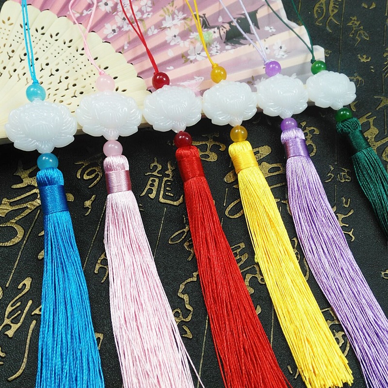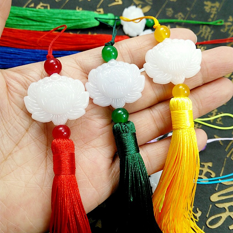 Imitation white jade lotus tassel ear, retro wind hanging ear diy handmade material Chinese style accessories hanging ear fan hanging ear