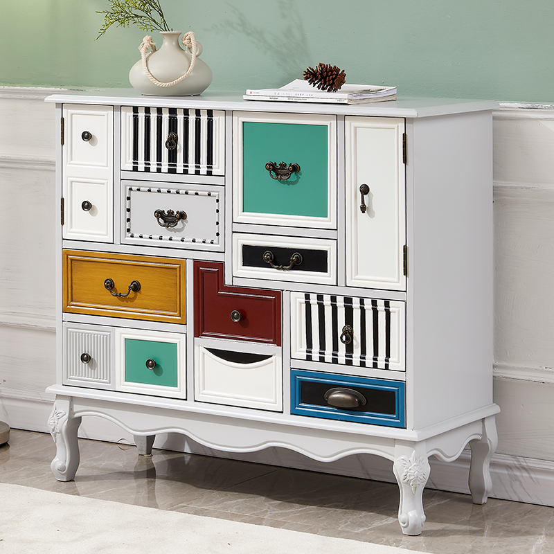 European and American style countryside neoclassical fighting cabinet table Xuanguan door hall Partition field painted solid wood decorative storage multi-bucket cabinet