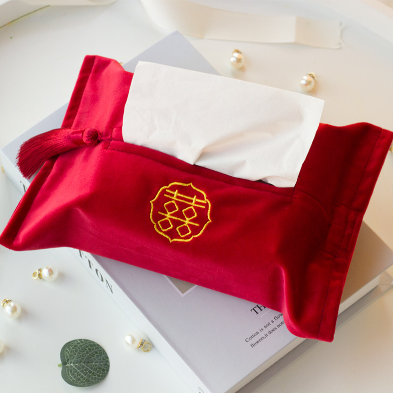 ins hi word embroidery tissue box fabric velvet paper towel bag wedding wedding room draw paper bag decoration