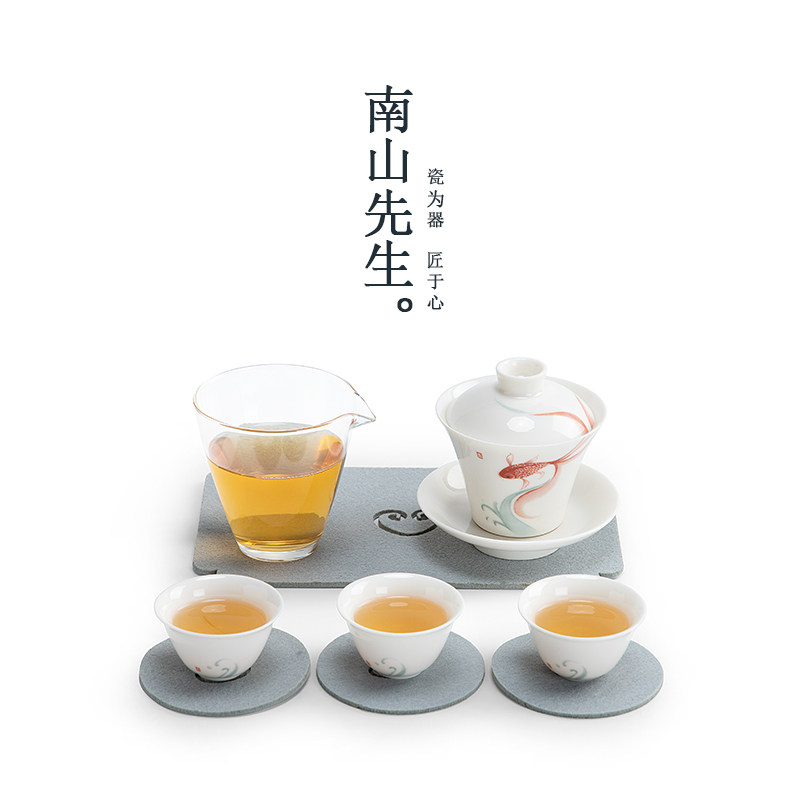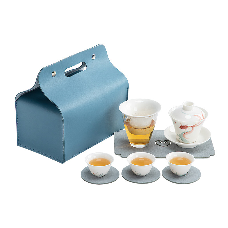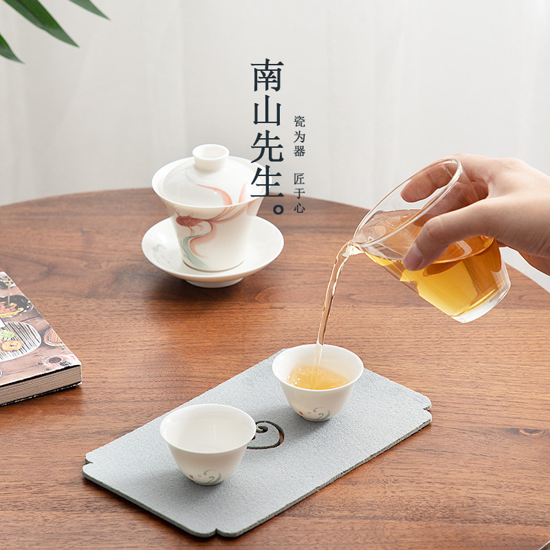 Mr. Nanshan Sujin Lianhua Express Cup Cover Bowl Tea Set Small Set Portable Tea Set Travel Bag One Pot Three Cups