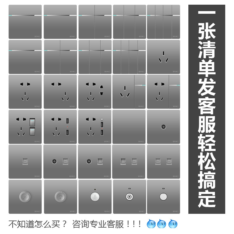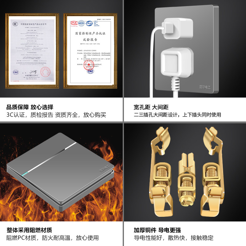 International electrician 86 Type of socket Panel Home Grey wall lamp Single opening Double bipolar opening double cut switch