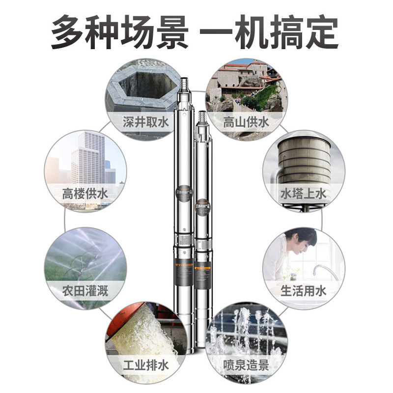 Deep well pump household well water stainless steel Shanghai submersible pump 220v high lift people's deep pump 380v pumping pump