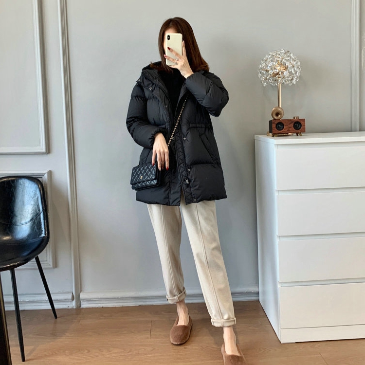 South Korean 90 white goose down duvet coat woman with long version Korean version temperament collection waist display slim hyphens winter thickened coat tide