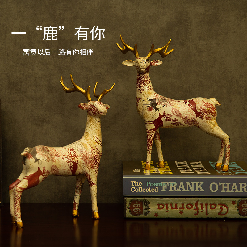 Nordic style lucky deer resin ornaments creative American home living room TV ark Christmas adornment porch