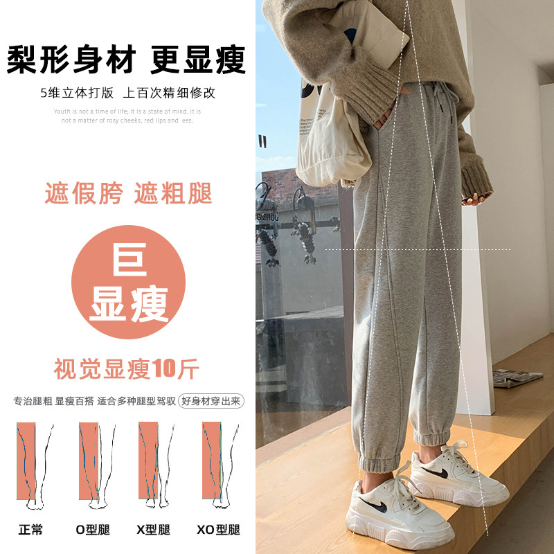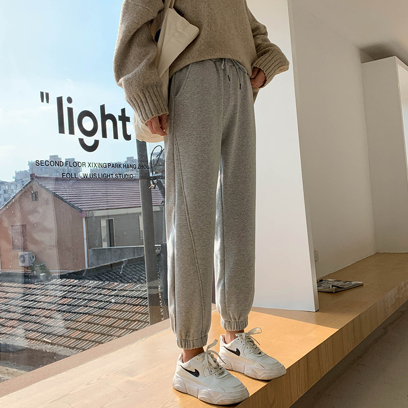 Glint thickened trackpants female loose bunches for spring and autumn sweatpants black high waist display slim outside wearing warm and casual pants