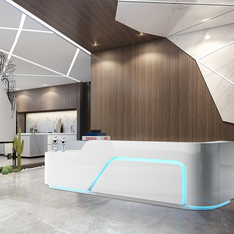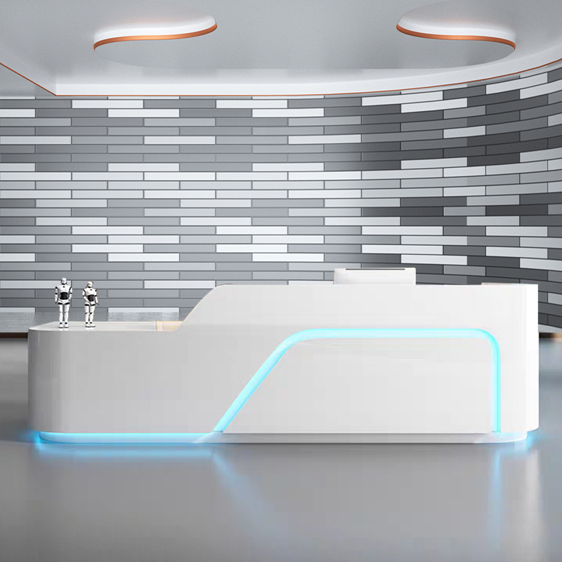 Company Roast Lacquer Front Desk Reception Desk Brief Modern Desk Arched Beauty Salon Collection Silver Counter Hotel Bar Customize