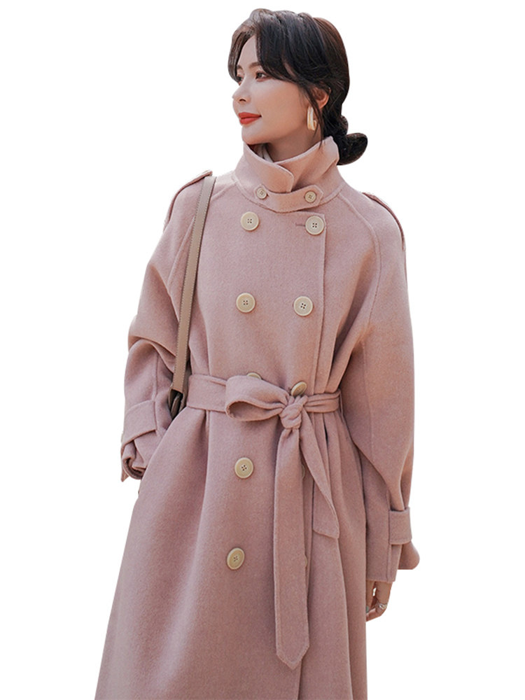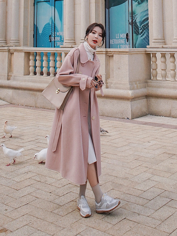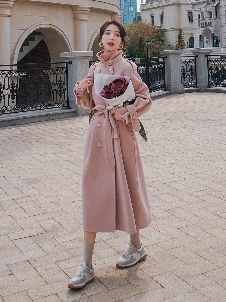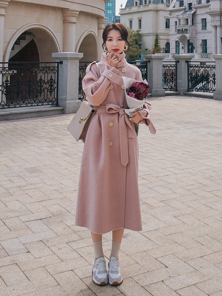Lecea Alice Double-sided Cashmere Coat Women's 2022 Winter New Gentle Wind Pink Waist Wool Coat