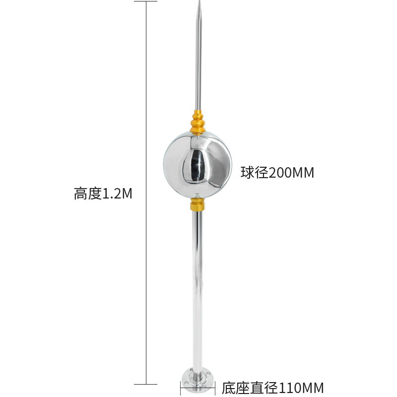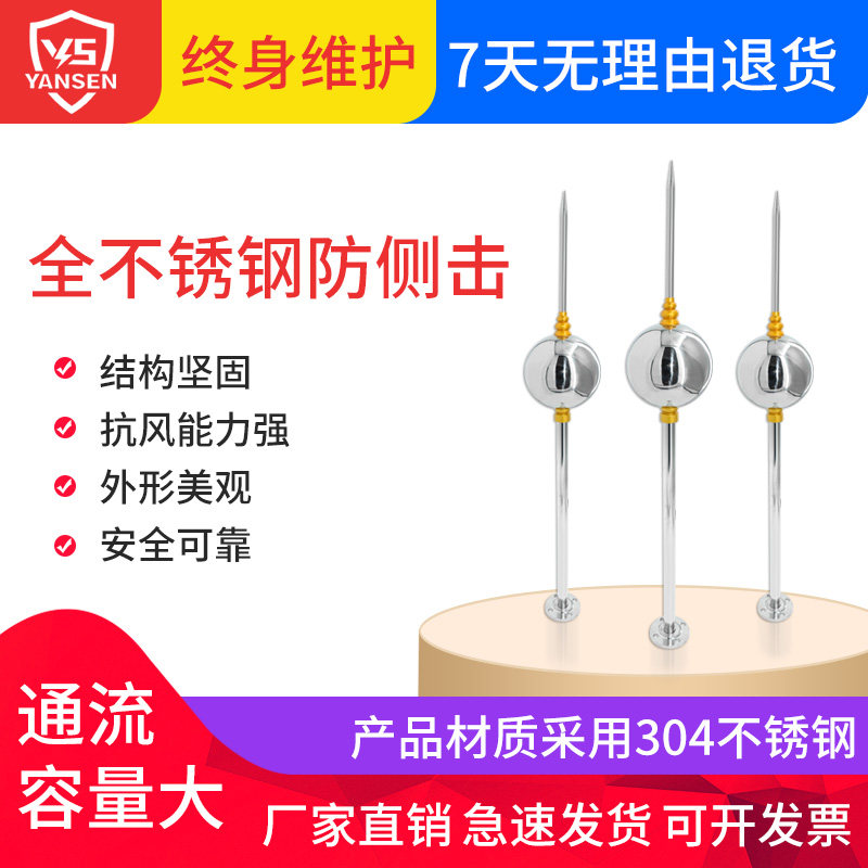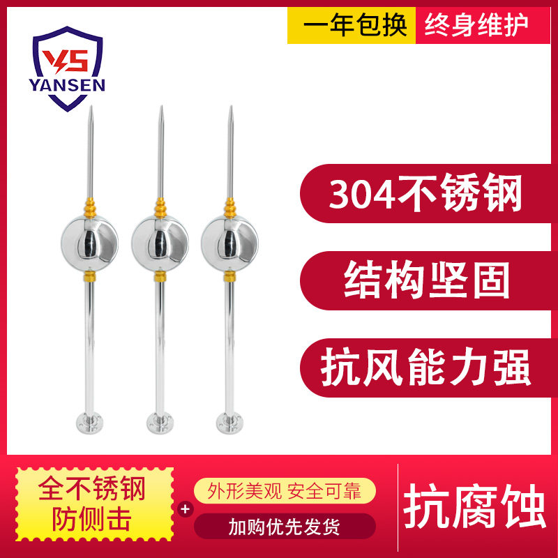 Lightning-proof engineering outdoor for single-ball lightning rod villa roof special stainless steel lightning rod to connect the grounding line