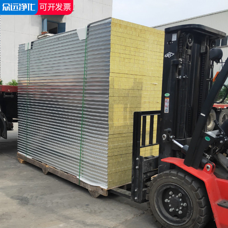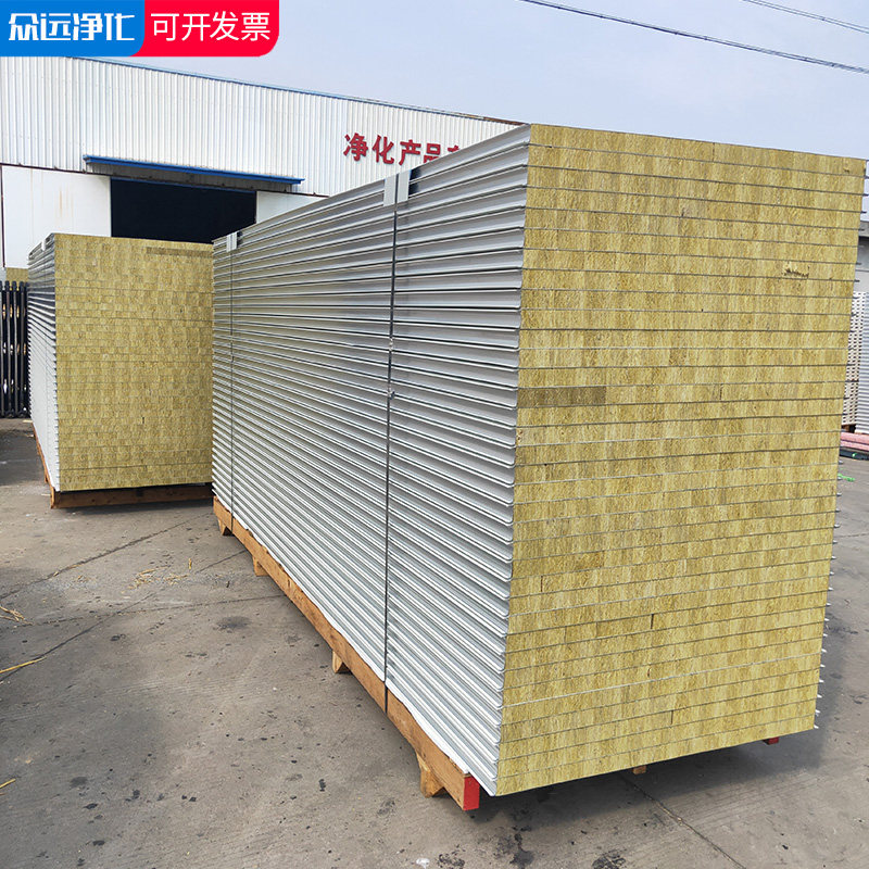 Rock wool plate color steel plate exterior wall fire insulation sandwich purification board partition wall 50mm thermal insulation clean ceiling plate