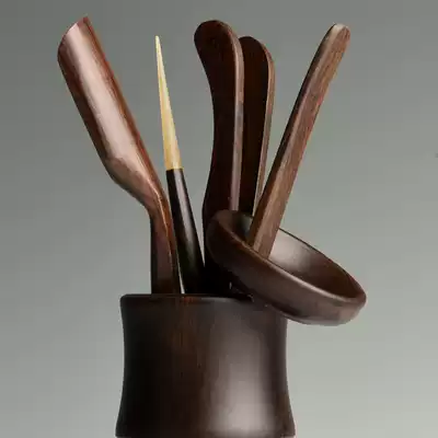 Kung Fu tea accessories Tea ceremony six gentlemen set Daquan ebony solid wood 6 gentlemen tea making tools Tea clip needle spoon