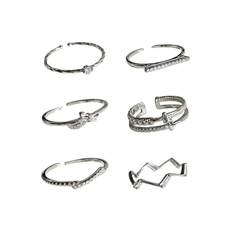 925 pure silver bow tie ring One 925 pure silver inclined One ring One 925 pure silver double-decked cross ring One 925 pure silver solid One ring with one 925 pure