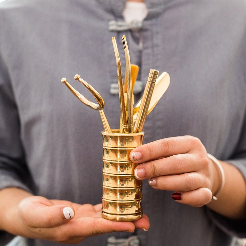 Brass Six Gentleman Kung Fu Tea Accessories Suit big All 6 Gentleman Tea Tool Tea Wash Tea Pinch Spoon Knife Suit