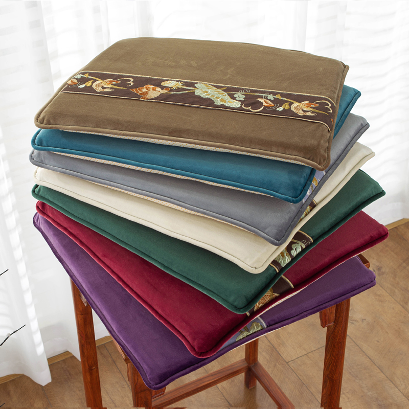 Mahogany chair cushion embroidery new Chinese style solid wood furniture chair cushion dining chair cushion household tea circle chair stool cushion