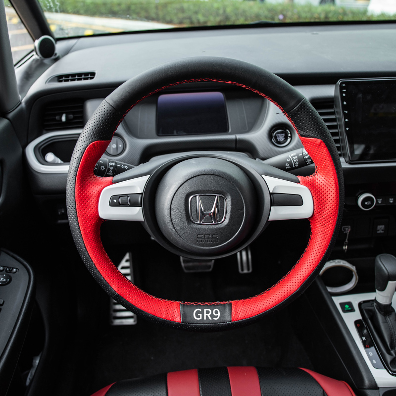 FIT special hand-sewn steering wheel cover (black-orange)GR9 standard FIT special hand-sewn steering wheel cover(black-green) FIT standard FIT special hand-sewn steering wheel cover(black-orange