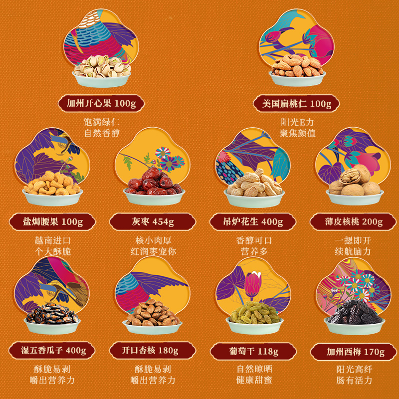 Orchard old farmer Splendid Gift Box 2222g Nut Snack Roasted Seeds Combination Gifts New Year's New Year Gift Pack Gift Box