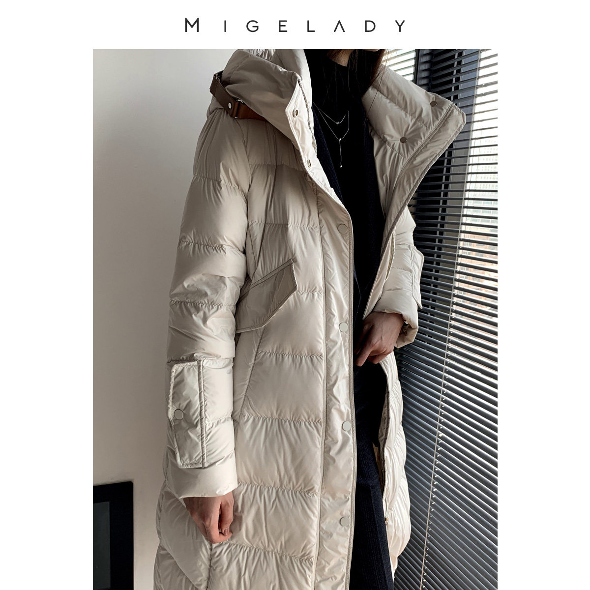 Leather Buckle Design Advanced Sensation Brands Lian Hat White Down Clothing Women's Winter Tide Ins Thick knee long style Fashion Temperament-Taobao