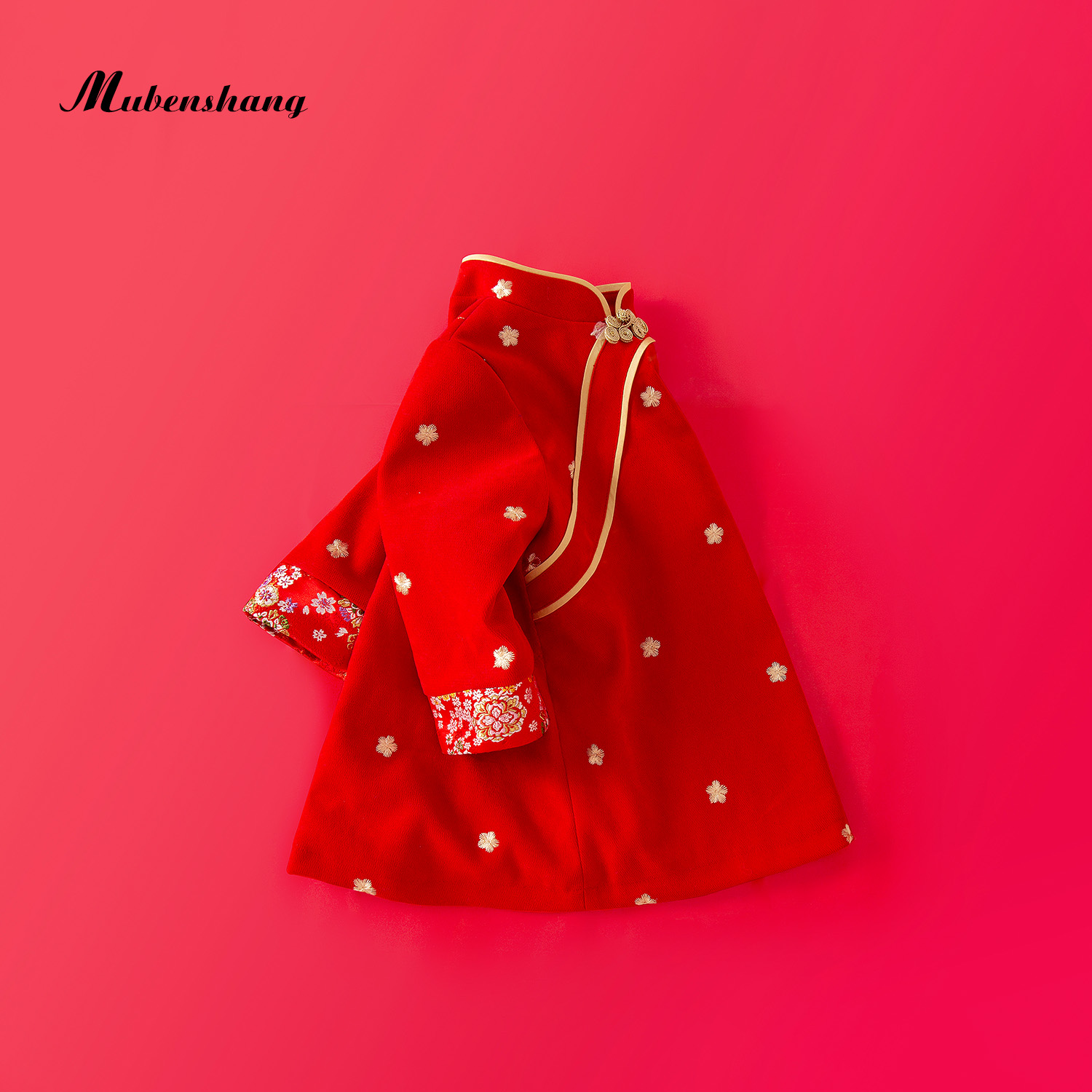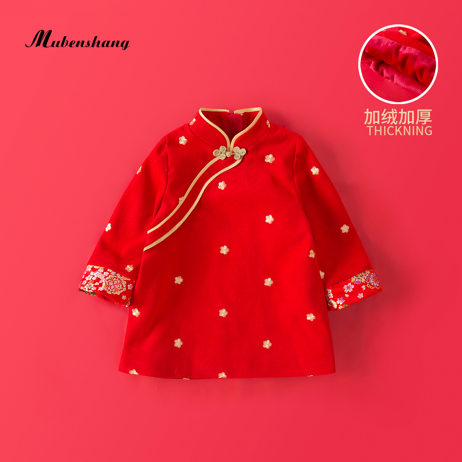 Girl Han Fu Autumn Winter Clothing Baby Qipao China Wind Tang Dress Beiyr Gown Dress Red New Year Dress 1-4 Years Old