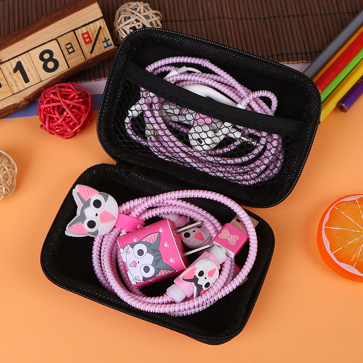 Cartoon charger take-up line storage bag 6-piece set Anti-break mobile phone data line protection rope storage bag set