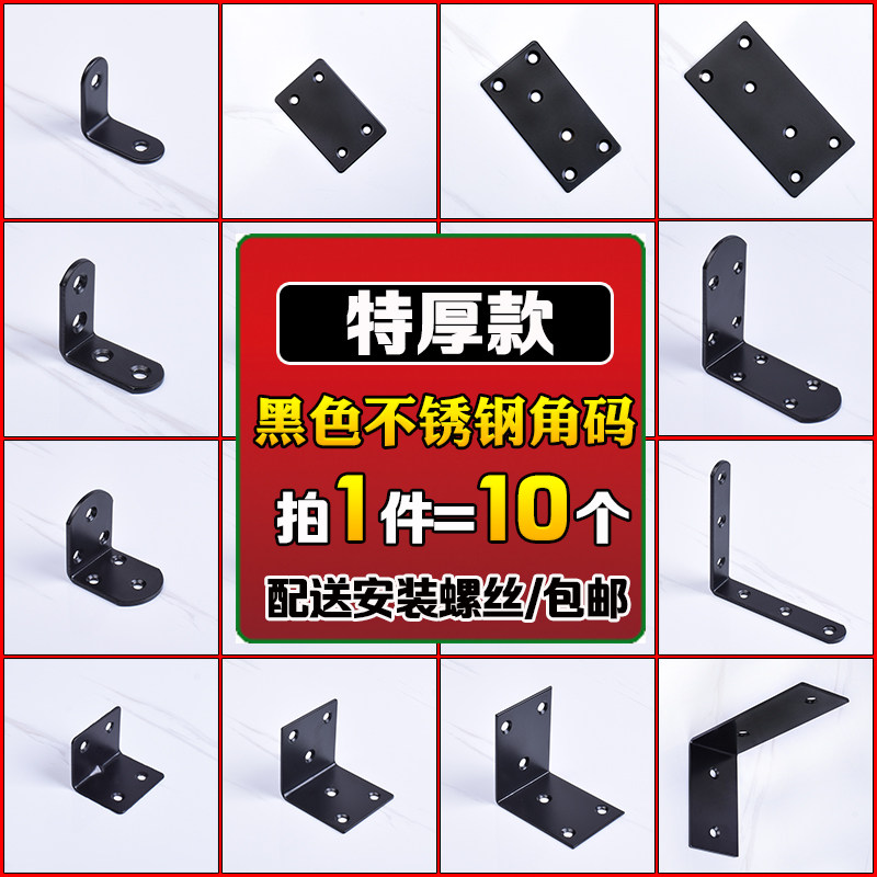 Black Stainless Steel Angle Code TL Type 90 Degrees Right Angle Plus Fixed Block Triangle Iron Bracket Laminate hardware connector