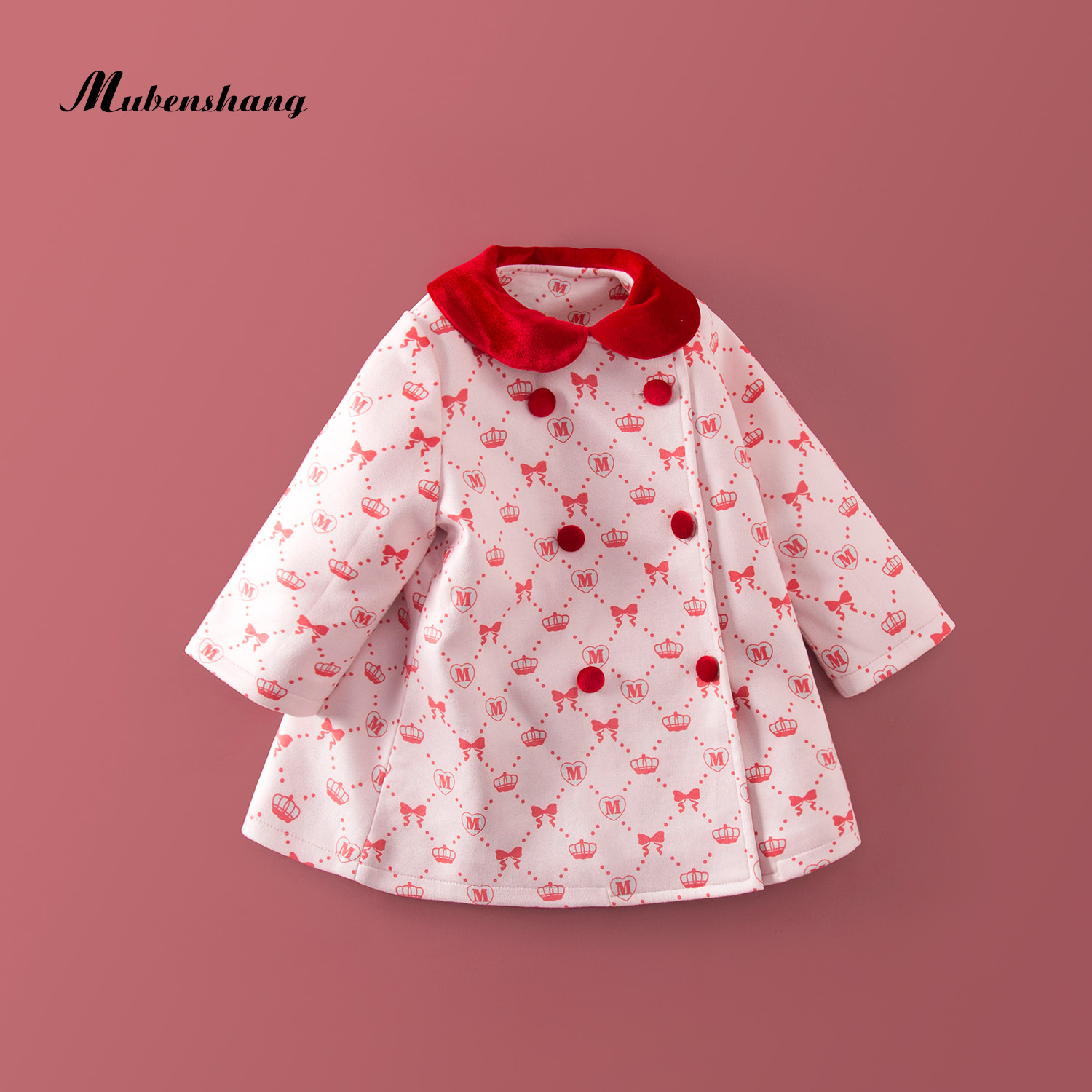 Mumotoshang girls mid-length woolen coat autumn and winter quilted padded thick coat baby winter clothes children's clothes 1-4 years old