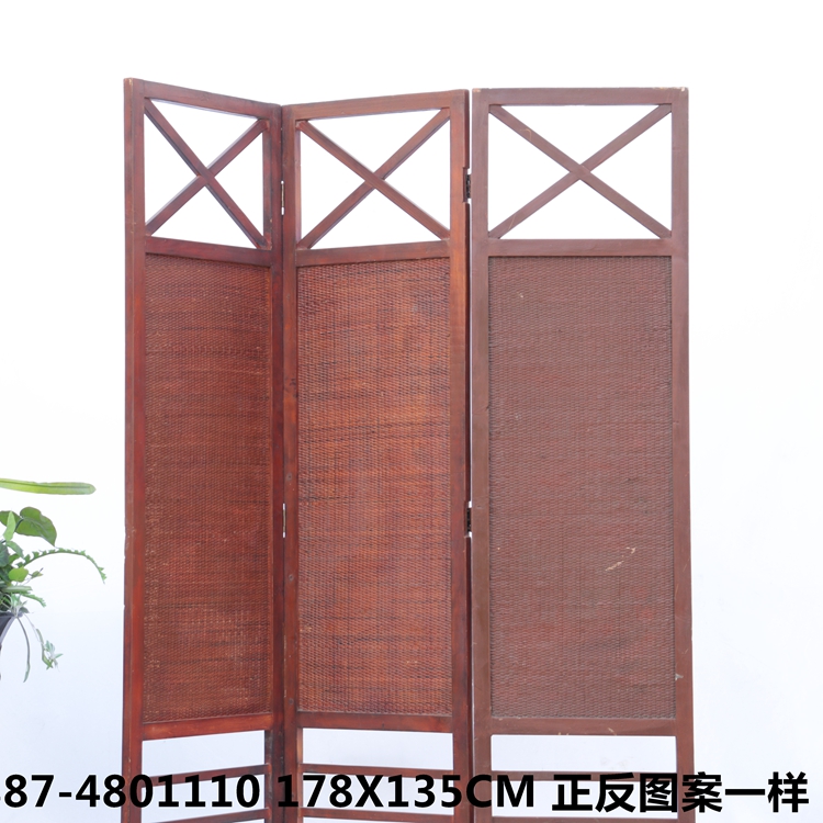Homestay living room soft decoration partition retro double-sided screen antique wooden rattan three-fold screen mobile bedroom shelter