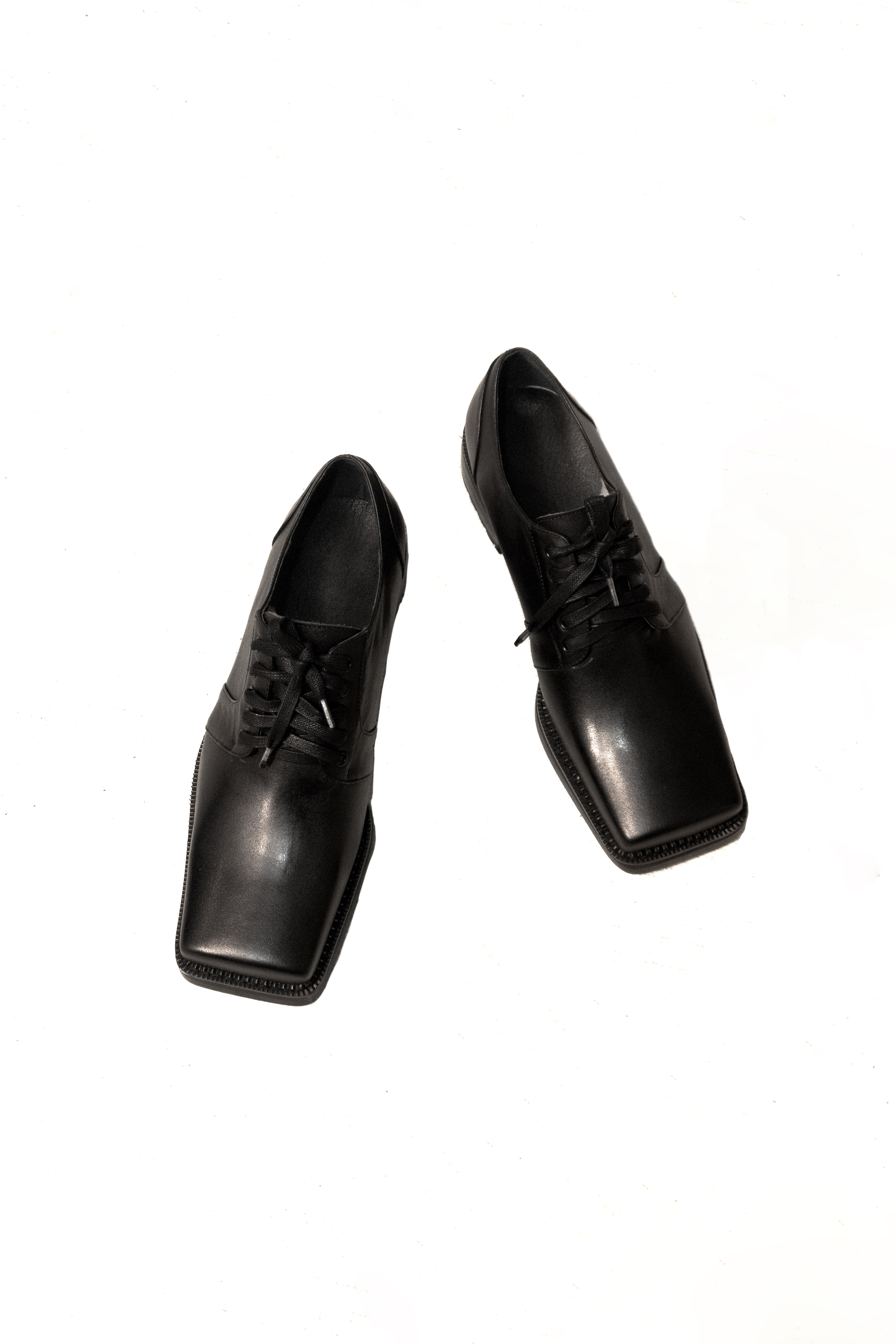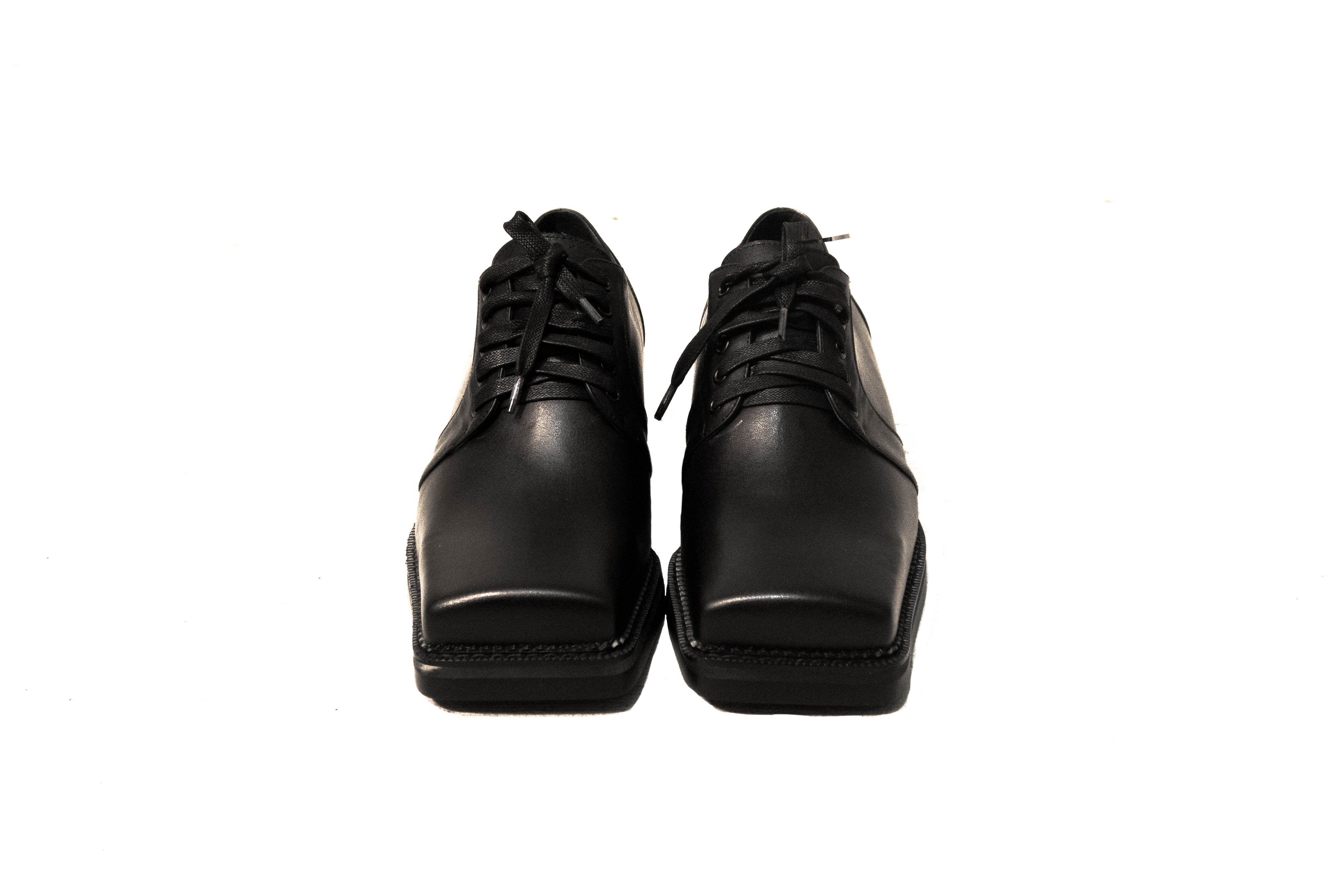 VAPOURBLUE niche original design dark square head unisex men and women with the same lace-up height cowhide leather shoes