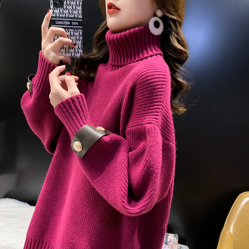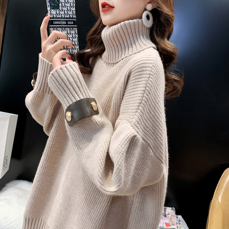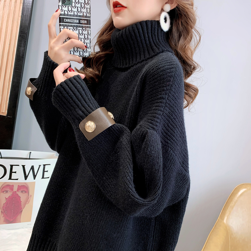 Super fire high collar sweater woman thickens medium and long autumn and winter 2021 new Korean edition relaxed retro - harbor knitting tide