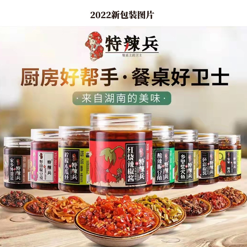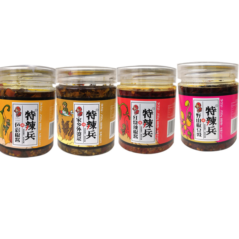 Special Spicy Soldiers hometown Granny dish 280g * 1 bottle of Spicy Soldier Wild Mountain Pepper Bean Drum 280gg * 1 Bottle Of Hot Soldier Red Hot Pepper Sauce 280g * 1 bottle of Spicy Soldier Three Color Pretzels 280g * 1