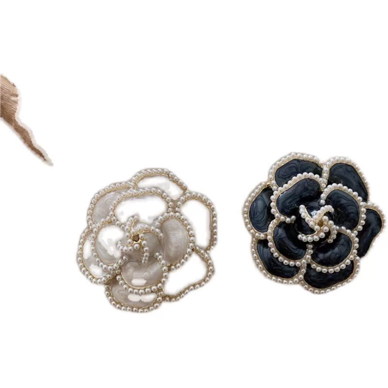 White Pearl Flower Double Brooch Navy Black Pearl Flower Double Brooch