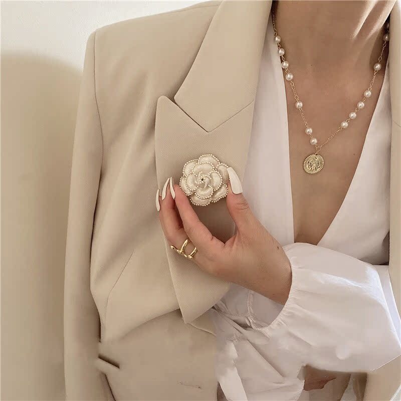 White Tea Korean Retro Flower Brooch Korean Pearl Metal Brooch Versatile Color Flower Net Red Brooch