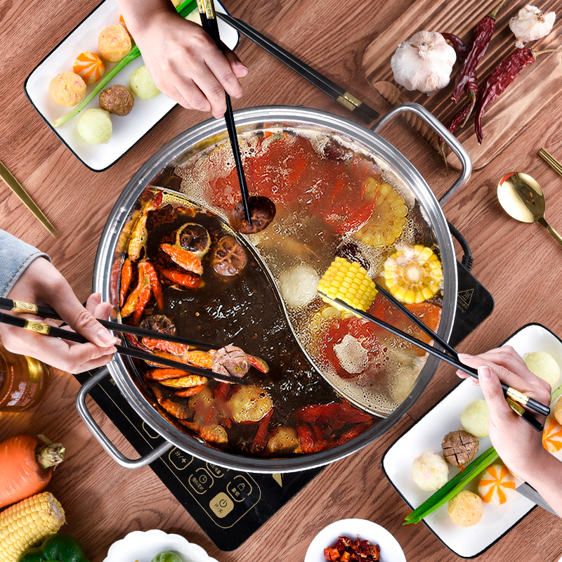 Mandarin skillet 304 stainless steel induction cookers special Chinese domestic large capacity electric hot pot hot pot Thickened Retro Pan
