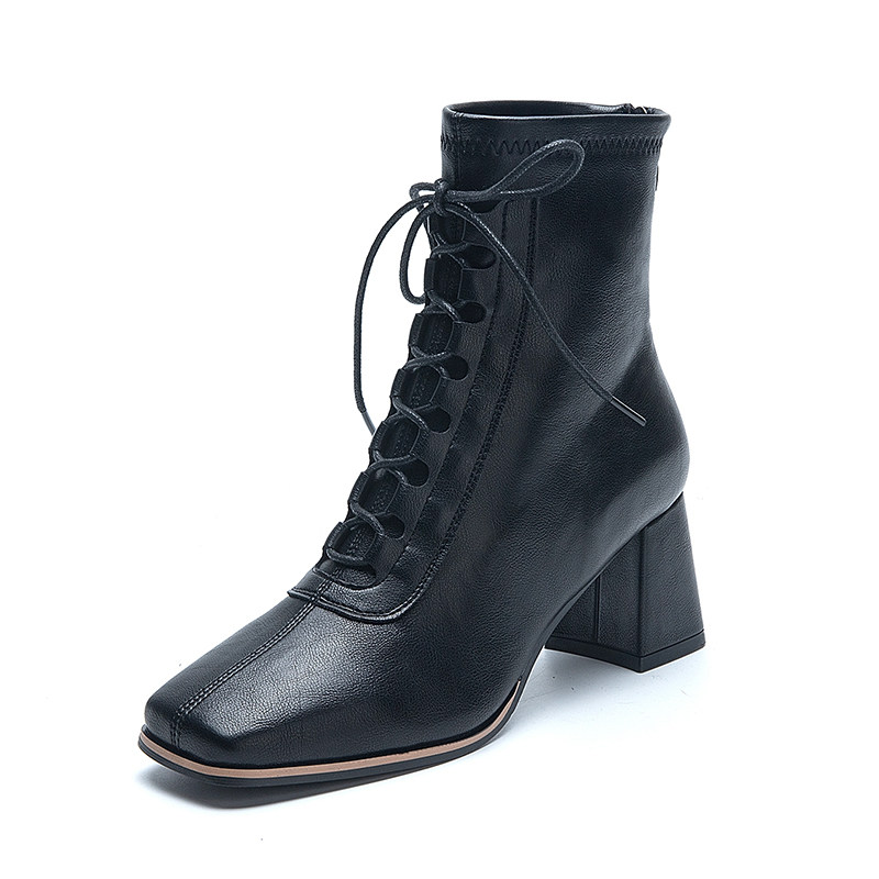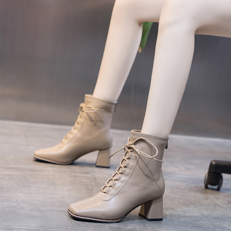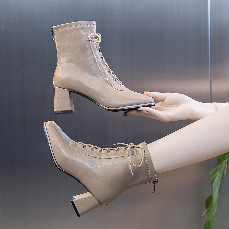 Chelsea short boots women's 2022 autumn and winter new thick heel net red skinny boots Martin boots plus velvet high heel back zipper