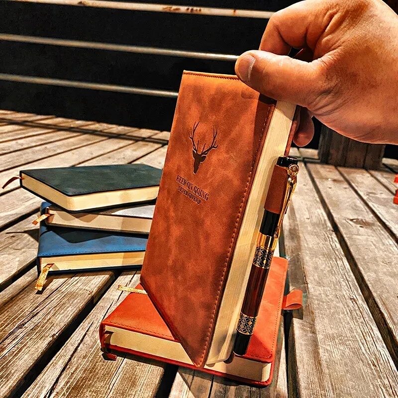 Super comfortable feel imitation leather deer head retro A5 thickened business notebook diary office notebook