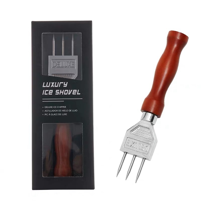 Domestic three-pronged ice cone Japan imported three-pronged ice cone single-pronged ice cone short single-pronged ice hammer long version wooden handle ice knife
