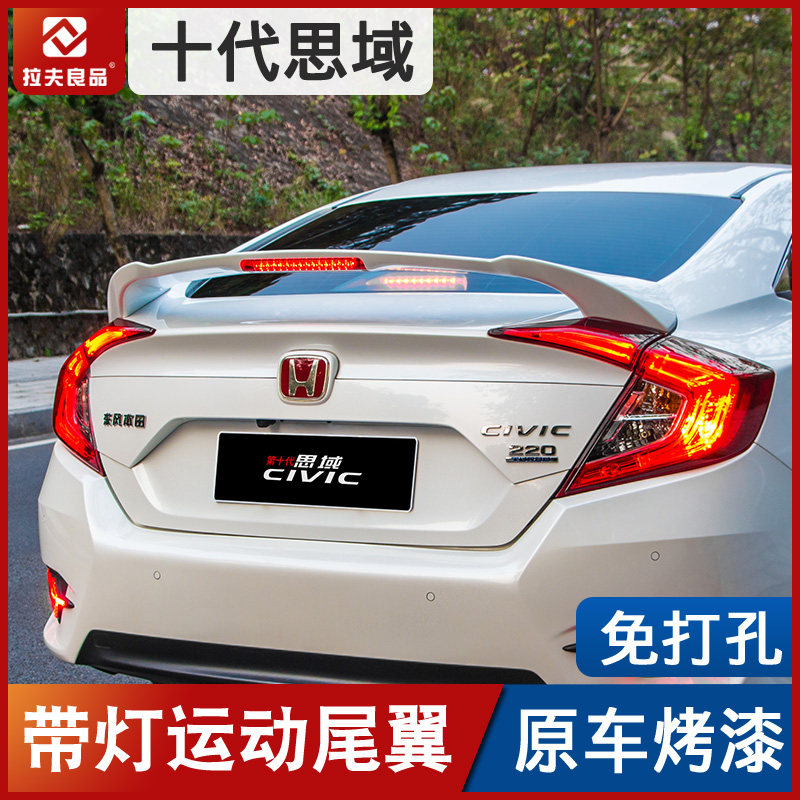 Suitable for the tenth generation Civic rear wing sports car wing with lights free punch size pressure wing modification accessories appearance sport personality