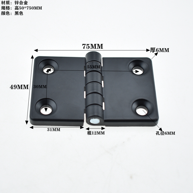 Zinc alloy metal hinge 50MM* 75 electric case cabinet black hinge electric cabinet hinge electric box machine industrial hinge fit