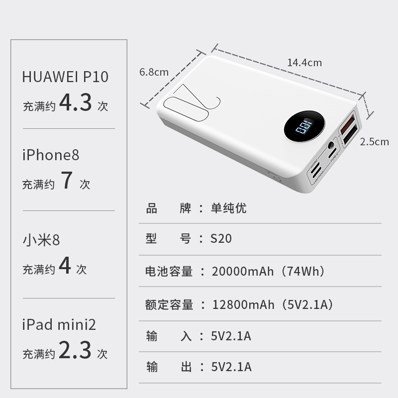 Mobile charging 20000 mAh large capacity portable action power fast charging application vivo Xiaomi apple Huawei glory Phantom oppo red rice mobile phone general official flagship store