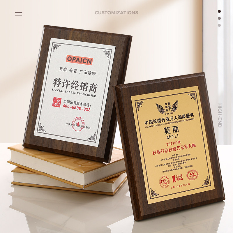 Gold pearlescent aluminum medal Silver pearlescent aluminum medal Black crystal mirror model Imitation walnut aluminum plate authorization plate Imitation wood aluminum plate authorization plate Gold zinc alloy medal Silver zinc alloy medal Gold aluminum