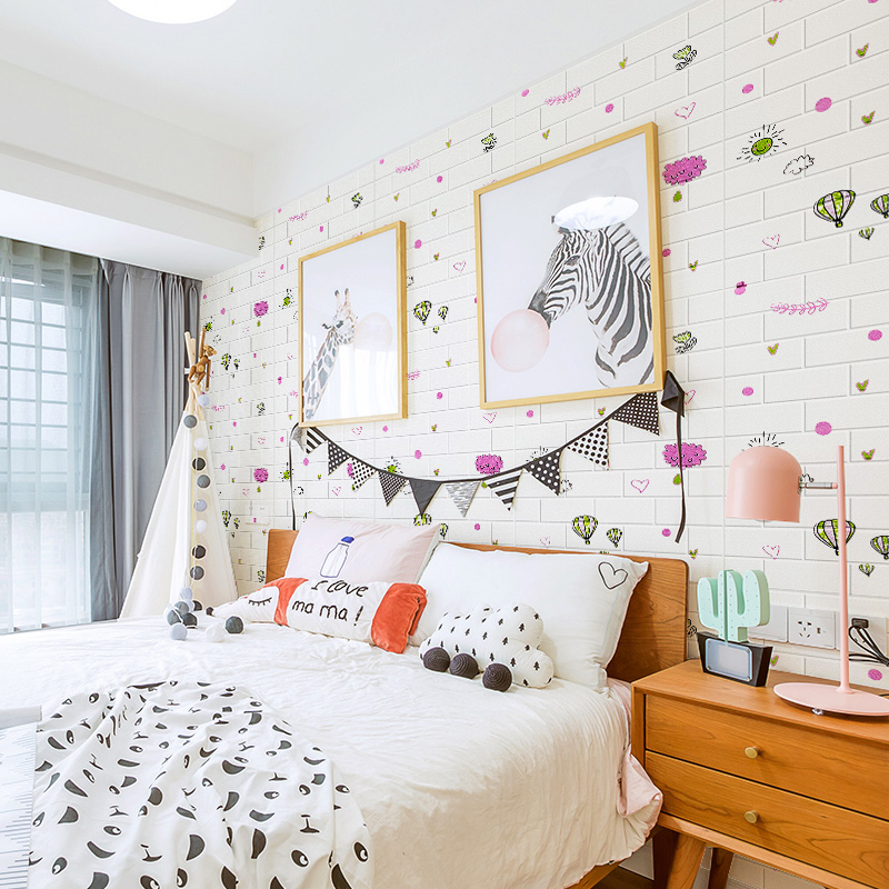 Wallpaper self-adhesive 3d stereoscopic wall sticker children's room cartoon wall sticker bedroom warm soft package wall decoration wallpaper