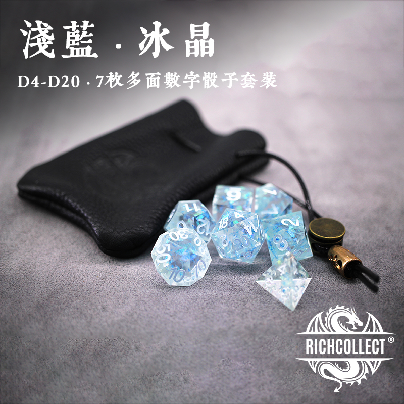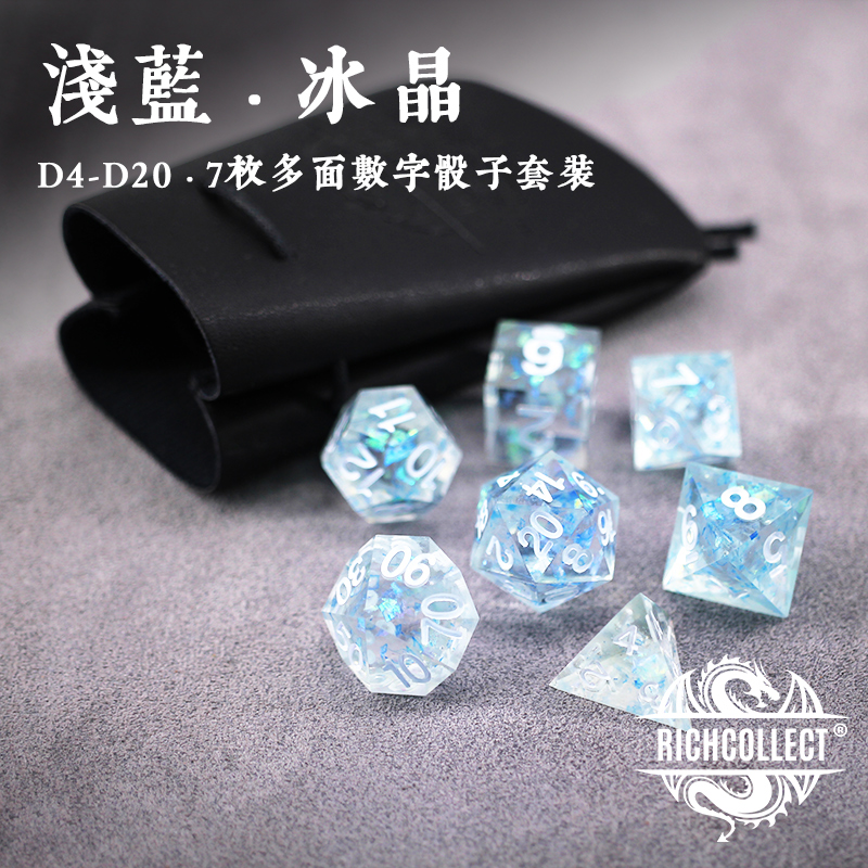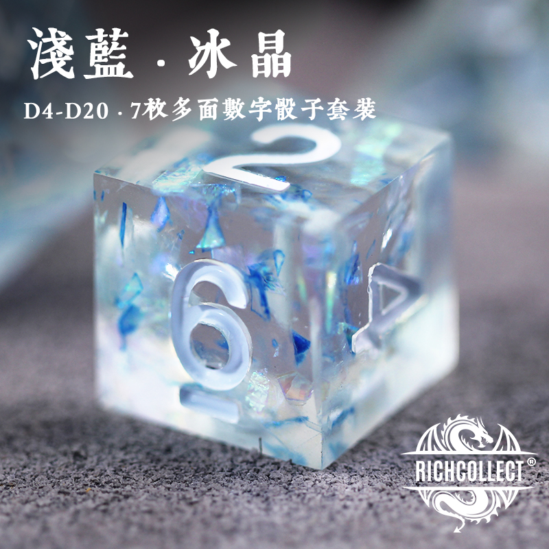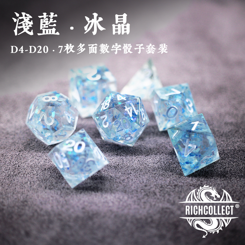 Light Blue Ice Crystal Dice set Dungeons and Dragons DnD acrylic TRPG Cesulu running group board game color