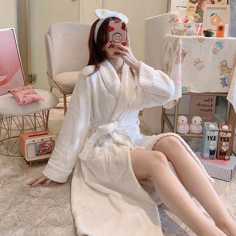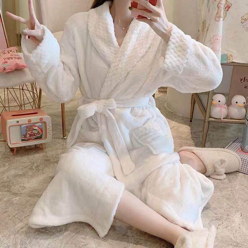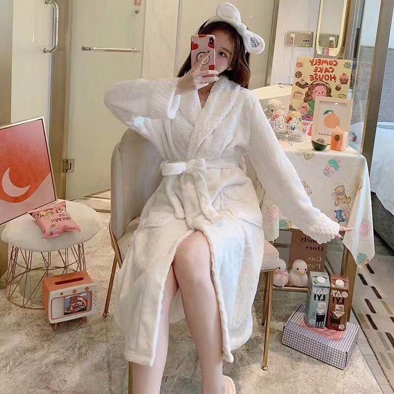 Sleepgown female autumn winter coral velvet thickness home dress bathrobe morning robe flannel cute lady Han edition pajamas