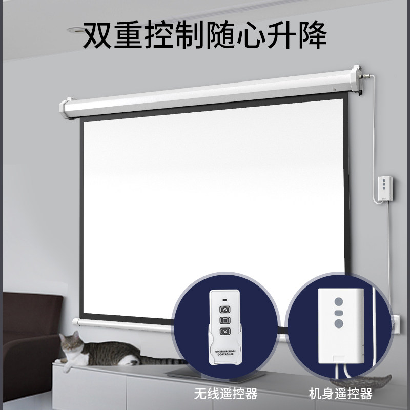 Custom electric projection curtain cloth spray painted cloth 100 inch 120 inch 150 inch 180 inch 200 inch 200 inch remote control automatic lifting HD wall-to-wall home living room engineering stage background curtain cloth