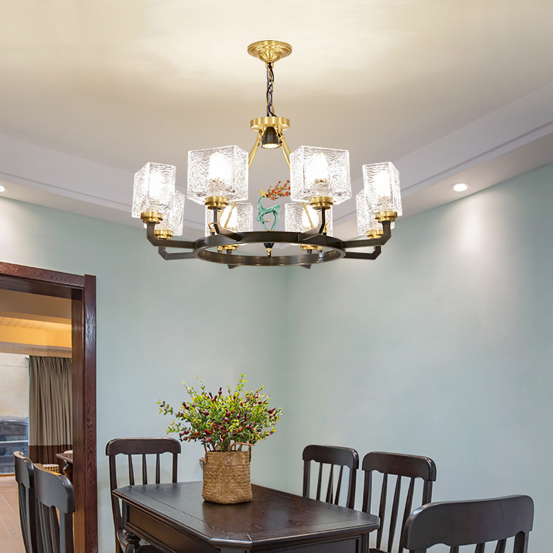 Total copper New Chinese living room chandeliers enamel color Chinese style Dining Hall Lamp Minimalist Modern Villa Hall Chandeliers