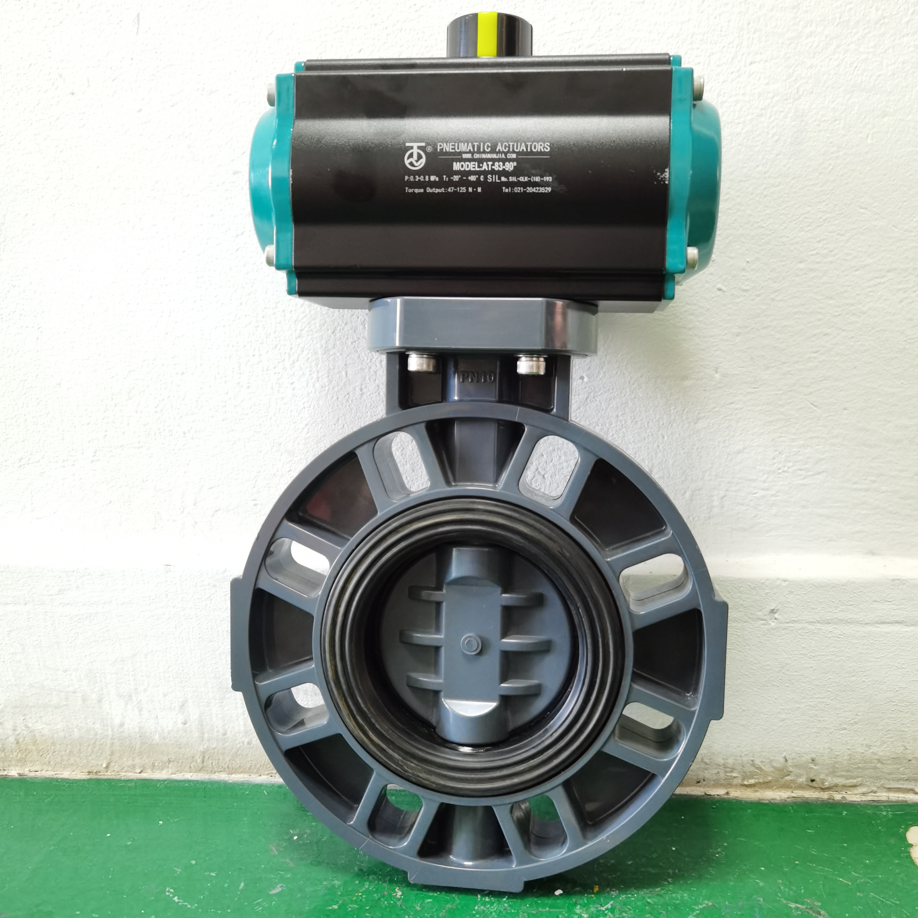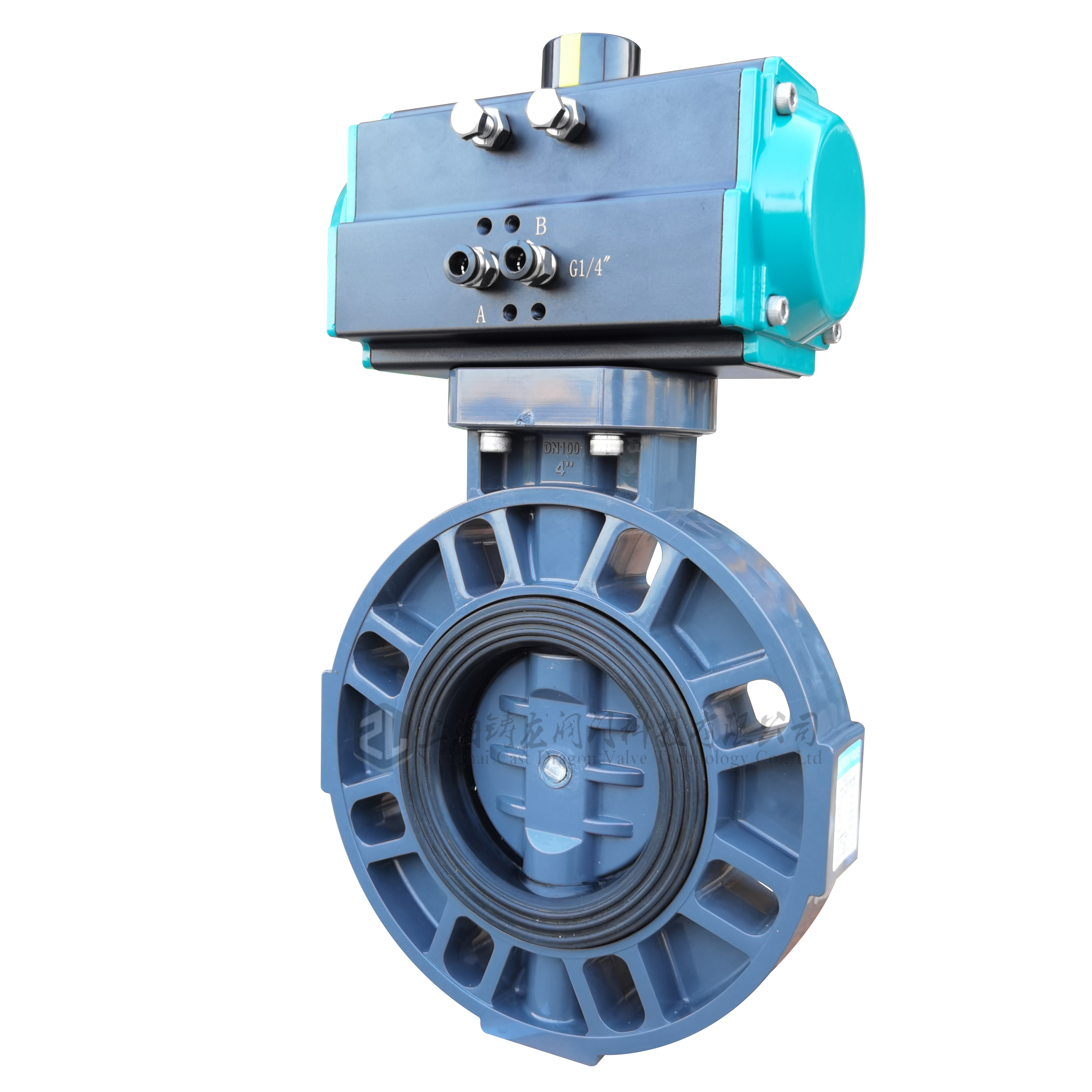 UPVC pneumatic plastic butterfly valve DN150 chemical anti-corrosion PVC acid and alkali resistant valve D671X explosion-proof cut-off PPH C