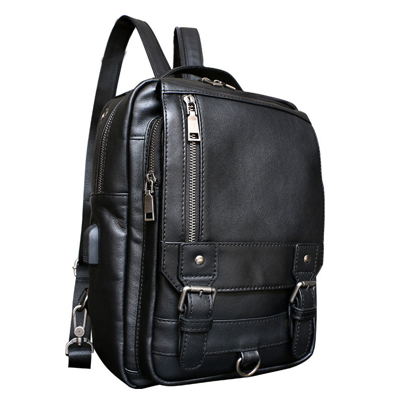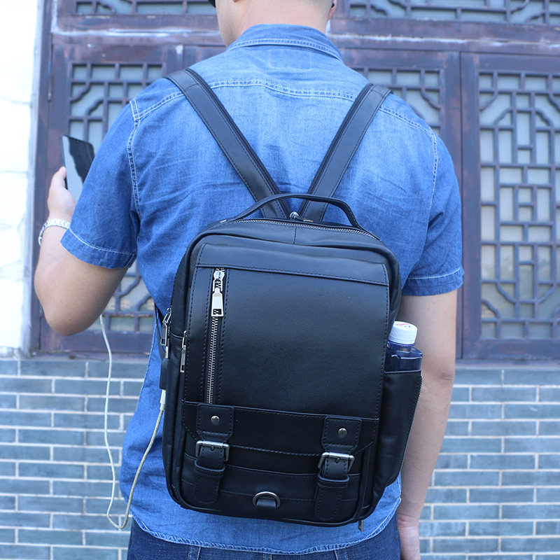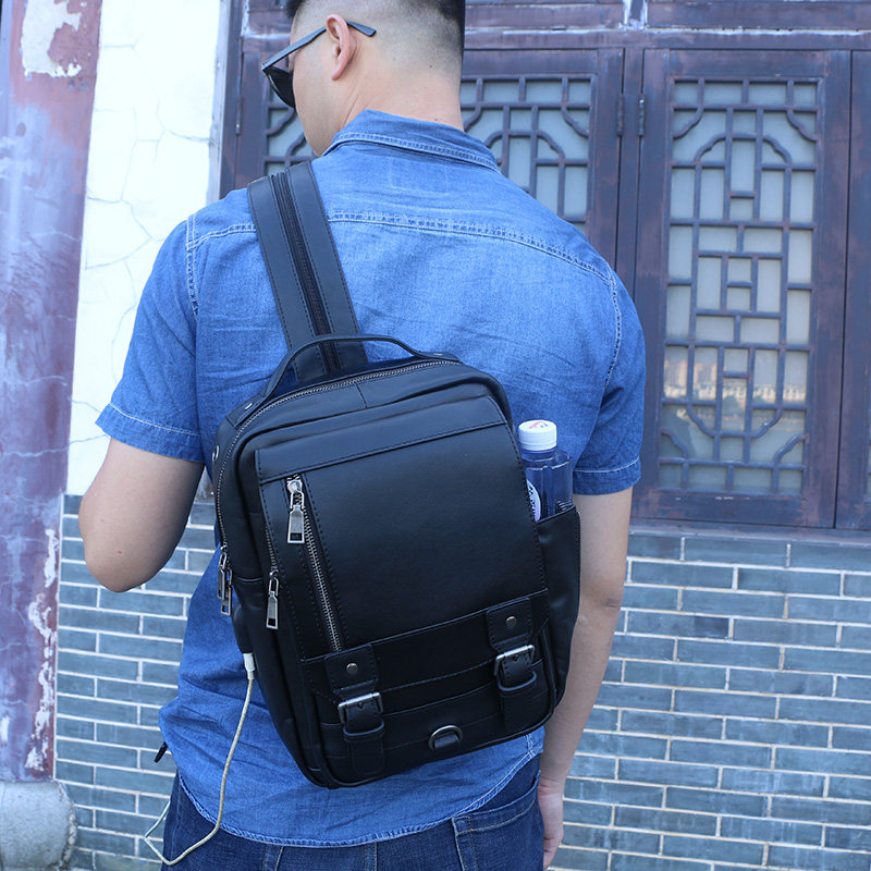 Men's Backpack Small Backpack Men's Genuine Leather Lightweight Small Simple First Layer Cowhide Single Shoulder Messenger Bag Multifunctional