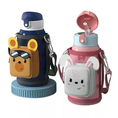 Children's thermos cup with straw Men and women dual-use primary school students go to school special portable kettle Kindergarten baby cup