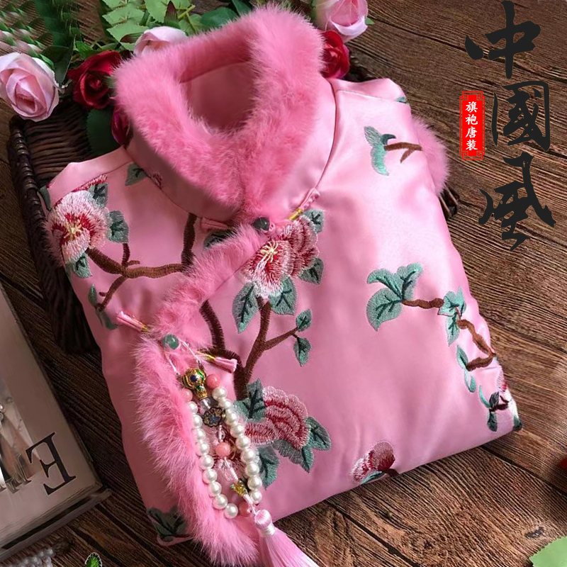 Chinese Lunar New Year qipao Short cotton clothes autumn and winter young Chinese style Teenage Girl Temperament Don clothing New Year upholswear cotton thickened cotton clothes