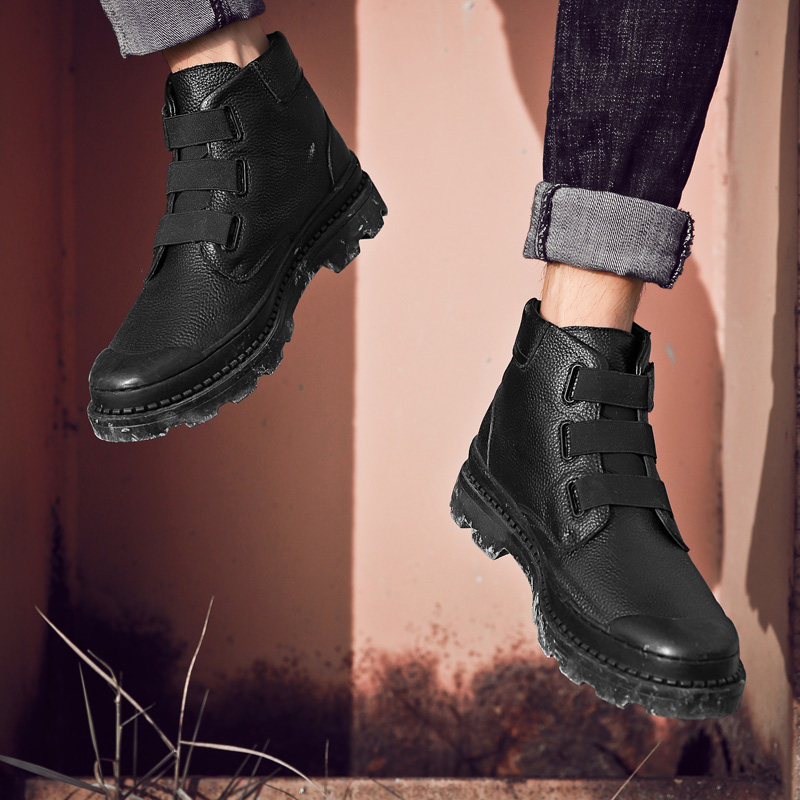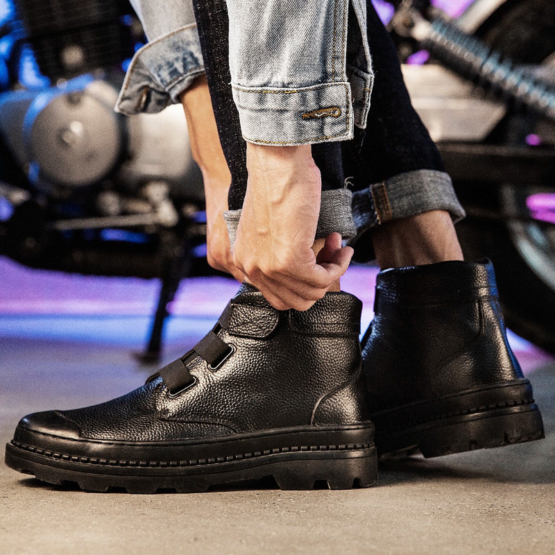 New Four Seasons Motorcycle Leisure Riding Men's Shoes High Top Layer Leather Velcro Boots Comfortable Wild Martin Boots