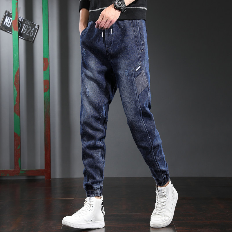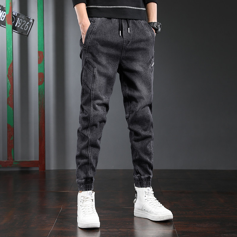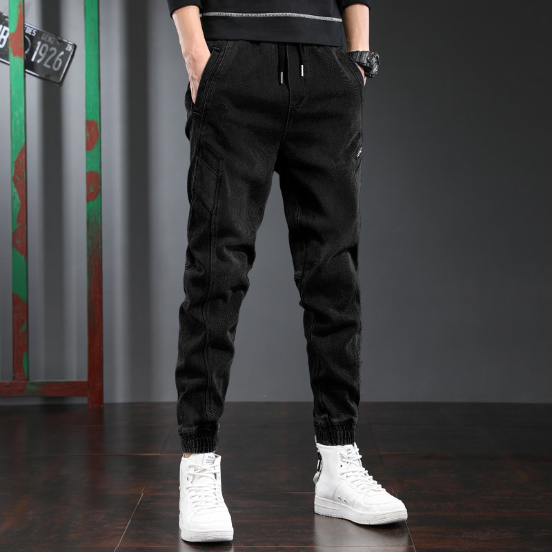Black jeans men's tide brand loose leg pants spring and summer large size fat thick legs casual harem pants trend