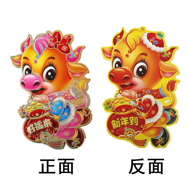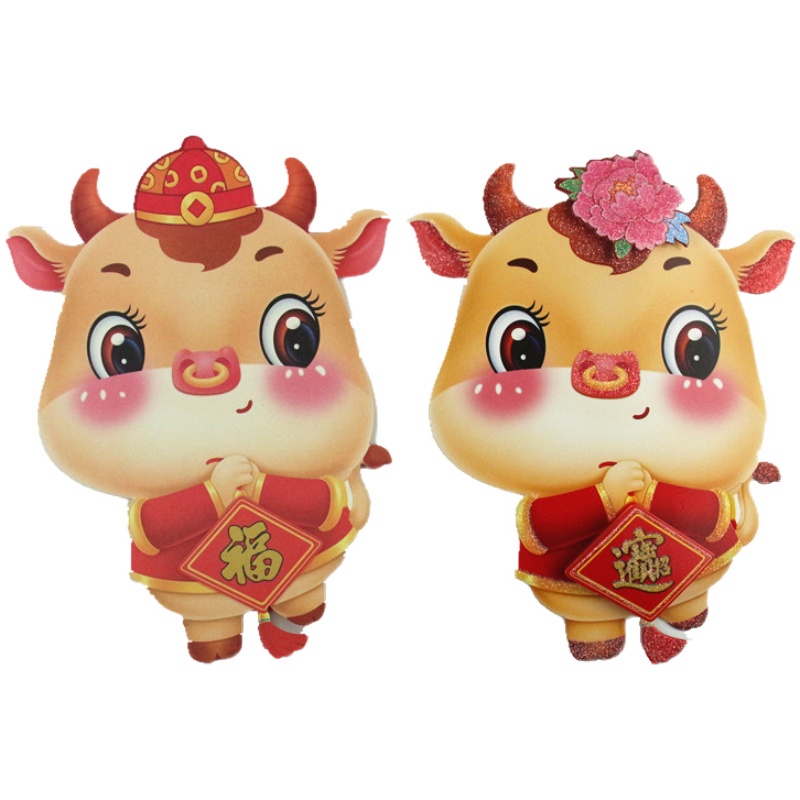 2021 Three-dimensional stickers Ox Year door stickers Xiao stickers Ox New Year Stickers Fu Word Door stickers Glass stickers decorations
